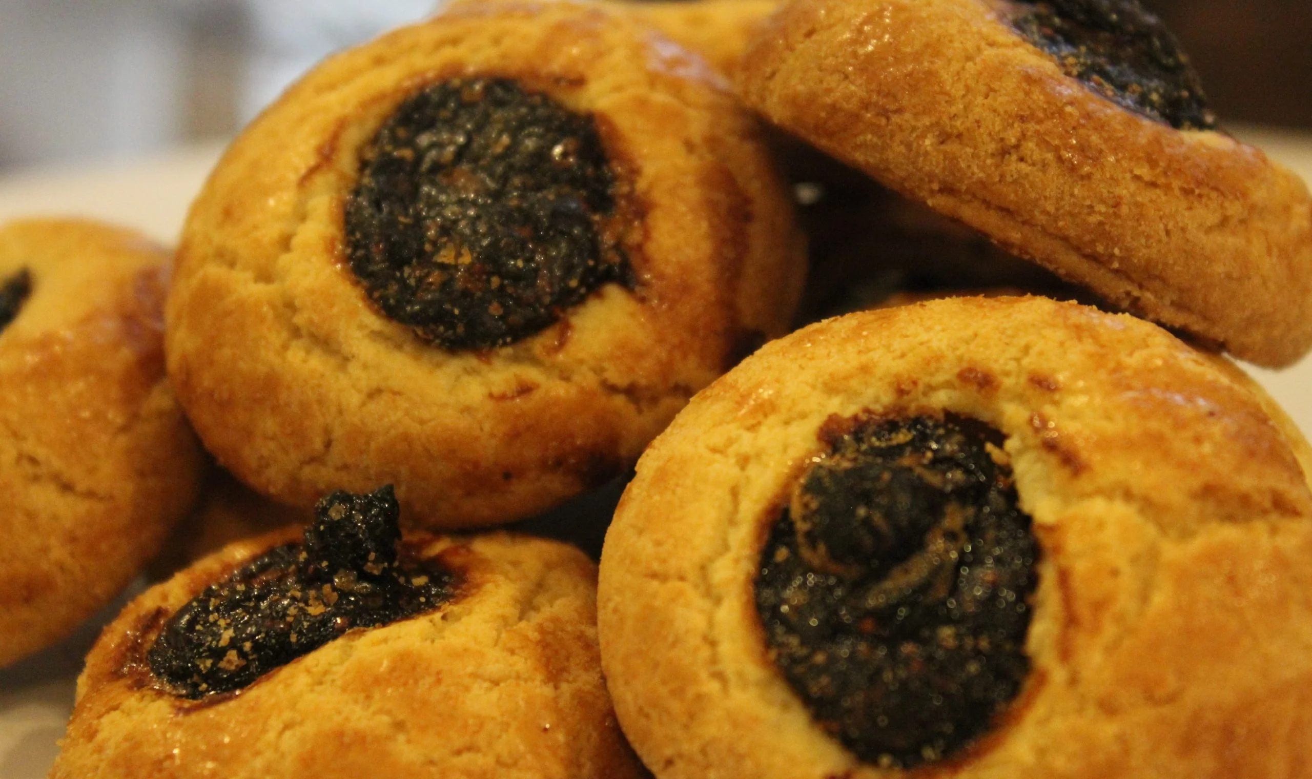 Cucidati – Round flaky cookie with a dollop of fresh ground figs mixed with Marsala wine and honey.
