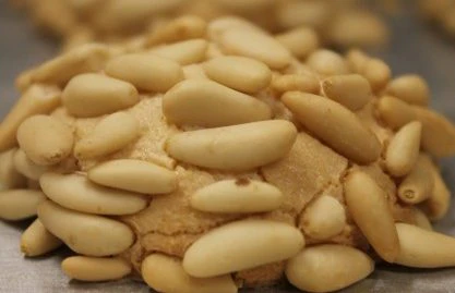Pignoli – Traditional Sicilian macaroons made with almond paste and whole imported Spanish pignoli (pine nuts), with a soft, chewy consistency.