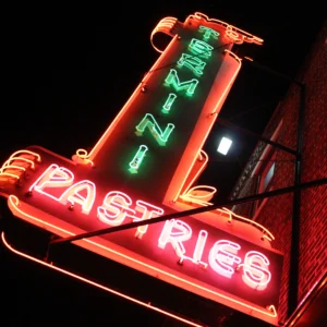 $20.00In 2021, we teamed up with world renowned artist, John Stango to help us countdown to our 100th anniversary. In his famous pop art style, Stango features our iconic sign and a classic De Soto Firedome automobile in a snowy setting outside Termini Brothers Bakery in South Philadelphia.