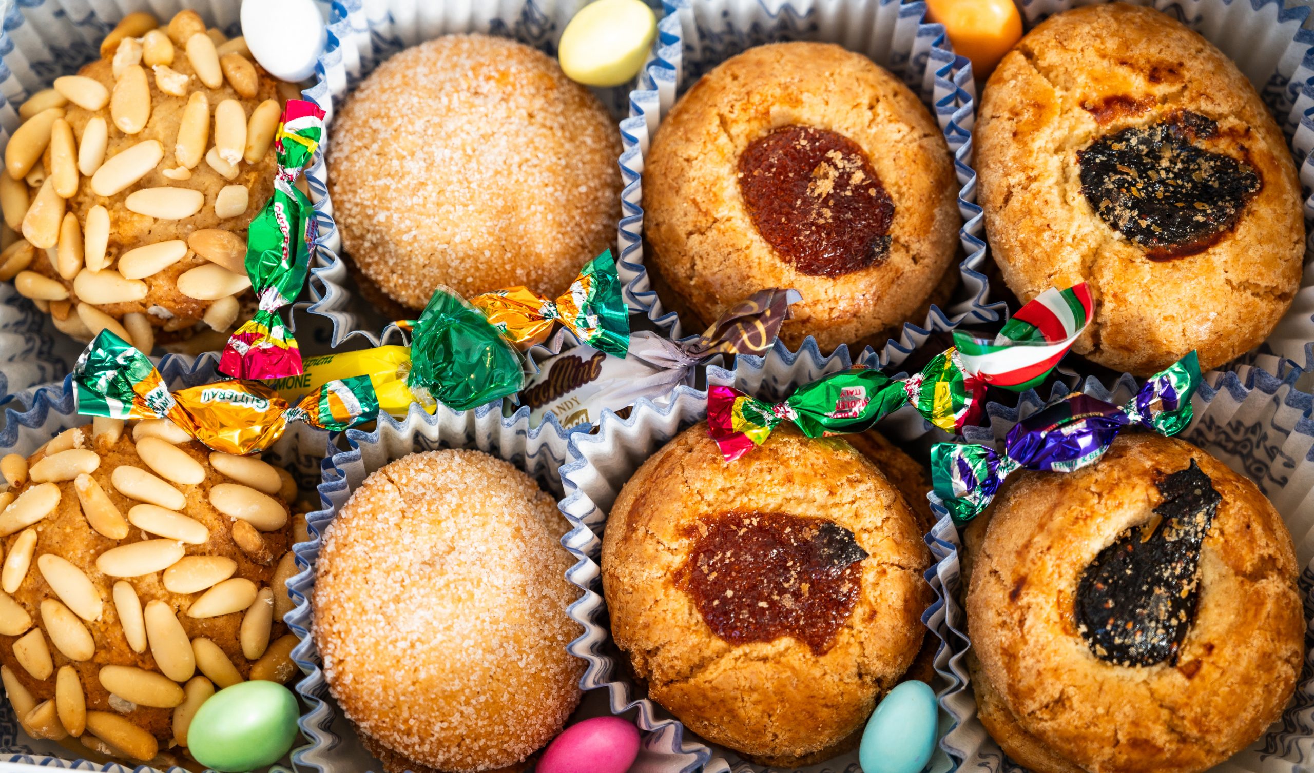 Pignoli – Traditional Sicilian macaroons made with almond paste and whole imported Spanish pignoli (pine nuts), with a soft, chewy consistency.