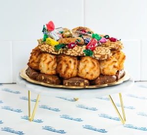 Regina Biscotti are one of our most basic and beloved items. Using Giuseppe Termini’s original recipe, these lemon flavored Biscotti are rolled in sesame seeds, giving them a slightly savory quality. The Regina Biscotti Tin contains approximately 2 lbs. of biscotti, assembled and decorated with imported candies and candy coated almonds. This tin serves approximately 8-10 people.